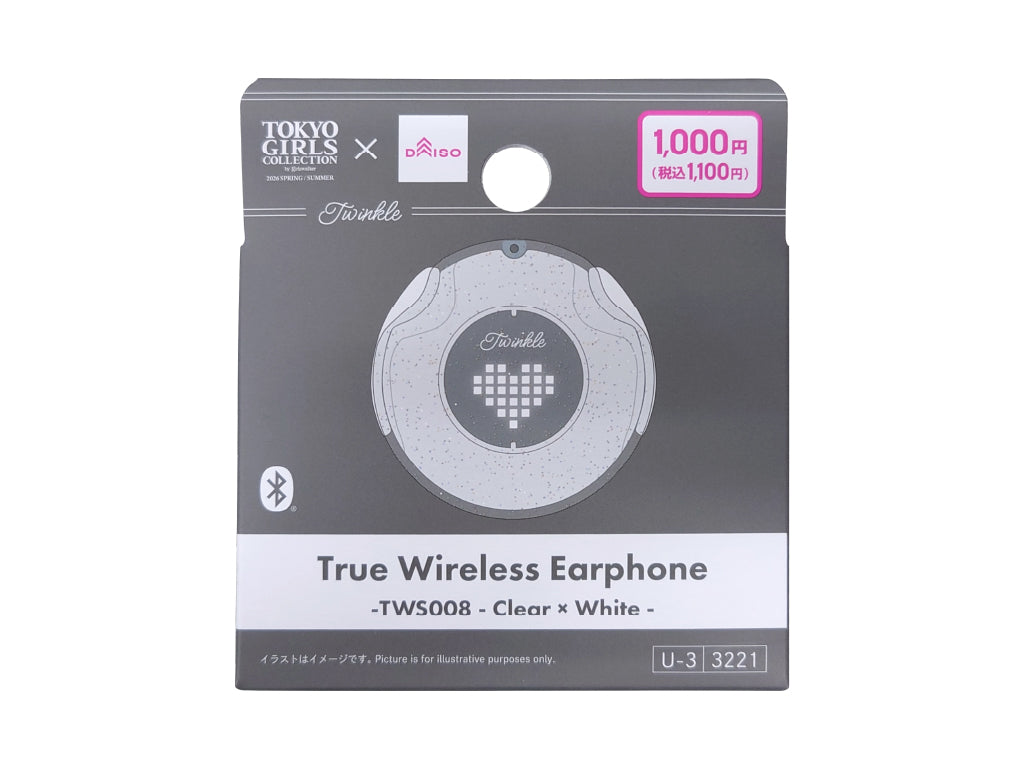 電池残量がわかるハート型LED 充電ケースの電池が少なくなると点滅 ©マイナビ TOKYO GIRLS COLLECTION 2026 SPRING/SUMMER●イラストはイメージです。 製品仕様 【通信方式】Bluetooth標準規格 Ver 6.0 【出力】Bluetooth標準規格 Power Class 2 【通信距離】見通し距離 約10m 【対応Bluetoothプロファイル】 A2DP、 AVRCP、 HFP、 SPP 【対応コーデック】SBC 【対応コンテンツ保護】SCMS-T方式 【電池持続時間】使用条件により異なります。 連続再生時間:約3.5時間 充電ケース使用時:約10.5時間 【バッテリー容量】 イヤホン:30mAh×2 充電ケース:180mAh 【バッテリー種類】リチウムイオンポリマー 【充電口】USB Type-C 【充電時間】 イヤホン : 約1時間30分 充電ケース(イヤホン+充電ケース) : 約2時間 イヤホン部分 【型式】ダイナミック型 【ドライバー】Φ8mm 【出力音圧レベル】115±3dB 【再生周波数帯域】20Hzー20000Hz 【インピーダンス】30Ω 【付属品】充電ケース、取扱説明書 対応機種 Bluetooth対応の機器 スマートフォン、携帯電話、パソコン、タブレット、各種ミュージックプレーヤー等 ※各プロファイルが対応していること 本品に充電ケーブルは付属していません。 USB規格に準拠したType C充電ケーブルをご用意ください。完全ワイヤレスイヤホン 取扱説明書 同梱物 充電ケース イヤホン 取扱説明書(本書) 各部名称 ハート型LED USB Type-Cポート 充電端子 イヤホンLED 操作タッチセンサー イヤーピース L/R表記 絶縁シール ※使用前にはがす 充電する 使用する前に充電ケースとイヤホンの充電を行なってください。 充電ケースを充電する 充電ケースのType-Cポートに充電ケーブルを接続して充電してください。充電中はハート型LEDが下図のように点灯します。充電が完了すると消灯します。 充電中:充電ケース充電完了まで下図挙動を繰り返し 充電完了:消灯 ※本品に充電ケーブルは付属していません。USB規格に準拠した充電ケーブルをご用意ください。 ●充電完了後のハート型LEDの挙動は使用するACアダプターの仕様によって異なります。 イヤホンを充電する イヤホンには絶縁シールが貼り付けられています。充電ケースから取り出し、絶縁シールを剥がしてから、再度充電ケースに収納してください。 充電ケースにイヤホンを収納してください。充電中イヤホンLEDは赤く点灯し、完了すると消灯します。イヤホン充電中、ハート型LEDはケースの電池残量に応じて点灯します。 ●イヤホンを収納した状態で充電ケースの電池が無くなると、イヤホンの電源が自動でONになりペアリングモードに移行する場合があります。 ●イヤホンの電池残量が少なくなると、音声アナウンスがあります。 ●接続先機器のイヤホン電池残量表示は、親機側イヤホンの電池残量の表示です。 ●イヤホン本体は電池が無くなった方から先に電源がOFFになり、以降は片耳使用の操作になります。 ●イヤーピースを所定の位置に装着しないと充電ケースと干渉するなどして充電できなくなる場合があります。また、強い衝撃を与えると充電ケースからイヤホンが外れ充電できなくなる場合があります。 ●電池が完全になくなっている場合、ハート型LEDやイヤホンLEDはすぐに点灯しません。充電が開始されるまで数時間程度かかることがあります。 ●長期間使用しない場合は3ヵ月に1度充電してください。 充電ケースの電池残量 ハート型LEDはイヤホンを収納すると点灯し、充電ケースの電池残量を表示します。ハートが点滅した場合、充電ケースの電池残量が残り少ない状態です。充電ケースを充電してください。 100−80% 79ー50% 49ー20% 19−6% 充電が必要 ※電池残量は目安です。 電源のON/OFF 取り出すと自動でON/収納すると自動でOFF 電源をONにする イヤホンを充電ケースから取り出すと、電源が自動でONになります。 手動で電源をONにする場合は、電源がOFFの状態からイヤホンの操作タッチセンサーを約3秒間長押ししてください。イヤホンLEDが青く点灯し電源がONになります。 電源をOFFにする イヤホンを充電ケースに収納すると、電源が自動でOFFになります。 手動で電源をOFFにする場合は、電源がONの状態からイヤホンの操作タッチセンサーを約5秒間長押ししてください。イヤホンLEDが赤く点滅し、電源がOFFになります。 ●接続機器との通信が途切れ接続が解除されると、節電モードに移行します。節電モードのまま再接続されない場合、数分で自動的に電源がOFFになります。 ペアリングして接続する(機器への初期登録) ①充電ケースからイヤホンを取り出す。 充電ケースから両側のイヤホンを取り出すと、自動でイヤホン同士のペアリングが完了し、親機側のイヤホンがペアリングモードになります。ペアリングモード中は親機側のイヤホンLEDが赤と青に交互に点滅します。 イヤホンの絶縁シールが貼り付けられたままだと電源が入りません。絶縁シールを剥がしてから充電ケースに収納し、再度取り出してください。 ②接続先機器のBluetooth設定から、本品を検索、ペアリングし接続完了。 【Bluetooth