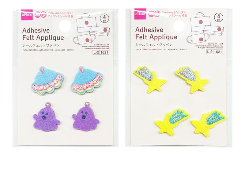 アイロン&シール接着 ●イラストはイメージです。シールとして使う場合 シールタイプだからノートやビン、缶など、布以外にも色々な所に簡単に貼れます! 布にアイロンで付ける場合 1.剥離シートをはがし、接着したいところにワッペンを置きます。 2.アイロンをドライ・中温(150℃)に保ち、あて布をして、表と裏からそれぞれ15から20秒間両手で力を加え、接着します。 完全に冷めるまでワッペンに触れないでください。 接着しにくい場合は作業を繰り返してください。●手洗いしてください。 ●漂白剤は使用しないでください。 ●タンブラー乾燥はしないでください。 ●ドライクリーニングはしないでください。●使用していないシールは、剥離シートをつけた状態で袋に入れて保管してください。●中高温アイロンできない布には使用しないでください。 ●乳幼児の手の届かない場所で使用・保管してください。 ●直射日光・高温多湿の場所を避けて、使用・保管してください。 ●場所や材質により、接着しにくい場合があります。 ●洗濯回数の多いものや接着が不十分な場合は、周りを縫って補強してください。 ●肌に貼らないでください。 ●家具、革製品等に貼らないでください。 ●長期間シールを貼ったままにすると、跡が残る場合があります。 ●防水、撥水加工品、濡れたものに接着できません。 ●火や熱源のそばに置かないでください。 ●本来の用途以外に使用しないでください。