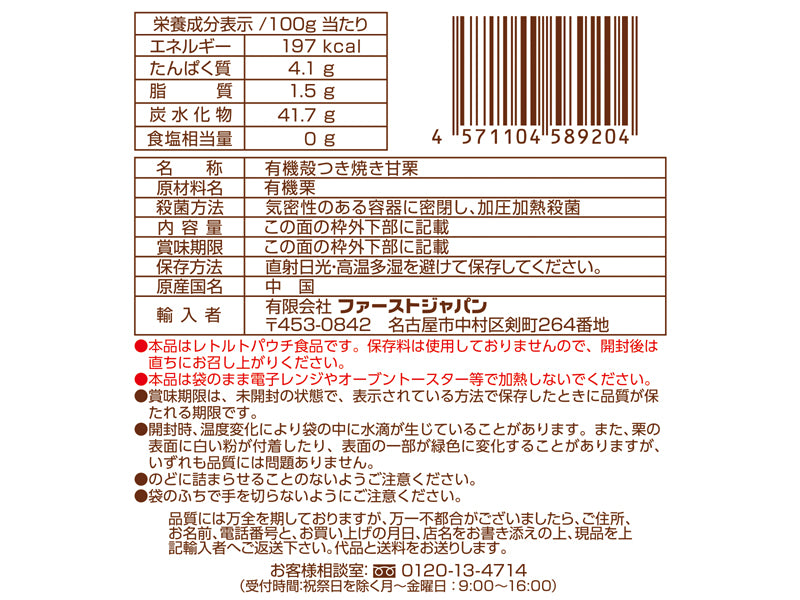 特徴:甘くて美味しいと有名な中国河北省遷西県産栗を使用しています