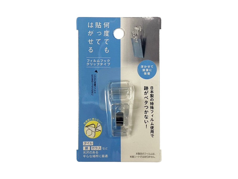 何度でも貼ってはがせる 浮かせて清潔に保管 日本製の特殊フィルム使用で跡がベタつかないクリップ 取付けられる場所 光沢のあるたいらな場所・吸着シートより大きい平らなタイル・透明ガラス・鏡面※破損の恐れのある薄いガラスや傷の入ったガラス面でのご使用はお避け下さい。 取付けられない場所・条件 凹凸面・ざらざら面・曲面・模様のあるステンレス・布やビニールなどの壁面・木・モルタル・すりガラス・プリント合板・レンジ・ストーブなどの高温になる場所 ※取付け場所の材質や表面加工により取付けられない場合がございます。(冷蔵庫やタイルの表面加工など)1.取付け場所のほこり・水分・油分・汚れを充分に取り除いてください。 2.半透明の保護フィルムだけはがしてください。 吸着面に触れない 3.吸着面を取付け面に押し付け、フィルム全体の空気を抜くように指で押しだしてください。 取付け後は確実に吸着しているか確かめてください。 ※壁面の状態によってはすぐにはがれ落ちる場合も考えられますので、取付け後は必ず確認してからご使用ください。フィルムが張り付きにくい場合 フィルムの吸着面を触ってしまったり付け外しを繰り返したりすると、ほこりの付着や指紋等の汚れが原因で吸着力が無くなってしまいます。その際は、フィルムの吸着面に中性洗剤を1滴程垂らし、指でやさしく洗ってください。タオルやティッシュ等は使わず自然乾燥させてから、ご使用ください。●直射日光の当たる場所を避けて、保管してください。本品を安心しておつかいいただく上でお客様のご注意・ご配慮に代わるものはございません。取付け方・場所の不良等により万一事故が発生致しましても責任・保障等は一切いたしませんので充分にご理解・ご注意くださいますようお願いいたします。●本来の用途以外で使用しないでください。●貴重品や壊れやすいものは掛けないでください。●変形・火災の恐れがありますので高温になる火気の側などではご使用にならないでください。●長時間の使用中、環境状況により落下の恐れがまりますので定期的に取付け状態を確認してください。●シートに傷・穴が付いた場合は絶対に使用しないでください。●万一の落下・脱落に備えて、取付けた下周辺に人がいないこと壊れ物を置かないことが安全面で必要です。充分にご配慮ください。●小さなお子様が本品に触れないようご注意ください。●廃棄の際は、各地方自治体の廃棄区分に従ってください。