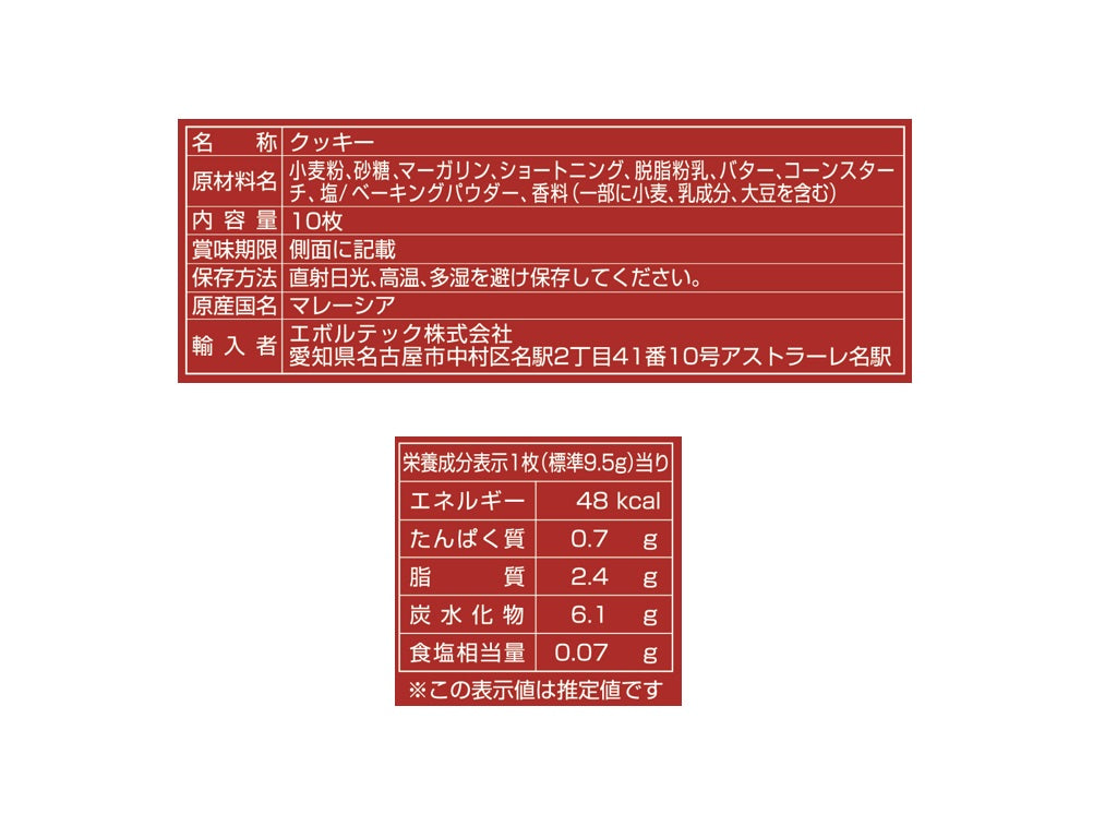 特徴:芳醇なバターが香る、さっくり食感のクッキーです。