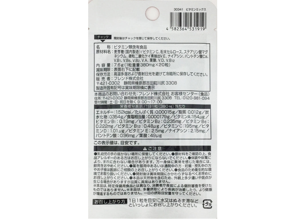 商品コピー:不足しがちな栄養をバランスよく補給 最終製造地 静岡県