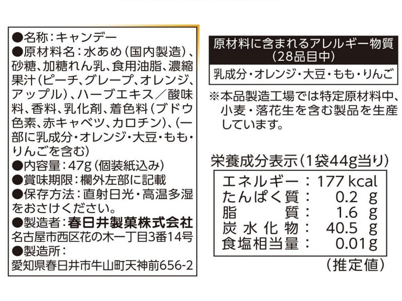 特徴:ほんのりミルクの味わいでのどにやさしく、まろやかで舐めやすいのど飴です。グレープ、ピーチ、青リンゴ、オレンジの4種アソート。13種類のハーブエキス配合。