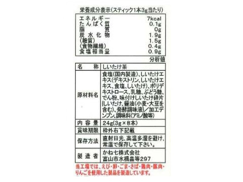 特徴:椎茸砕片・しいたけエキスと食物繊維を配合した風味豊かな顆粒状のしいたけ茶です。