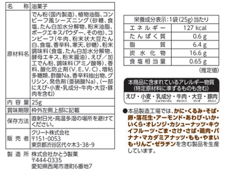 特徴:「ノザキのコンビーフ」をイメージした味付けのひとくちチップスです。