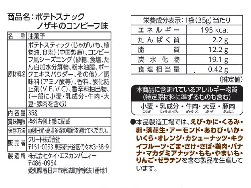 特徴:ノザキのコンビーフをイメージしたポテトスナックです。