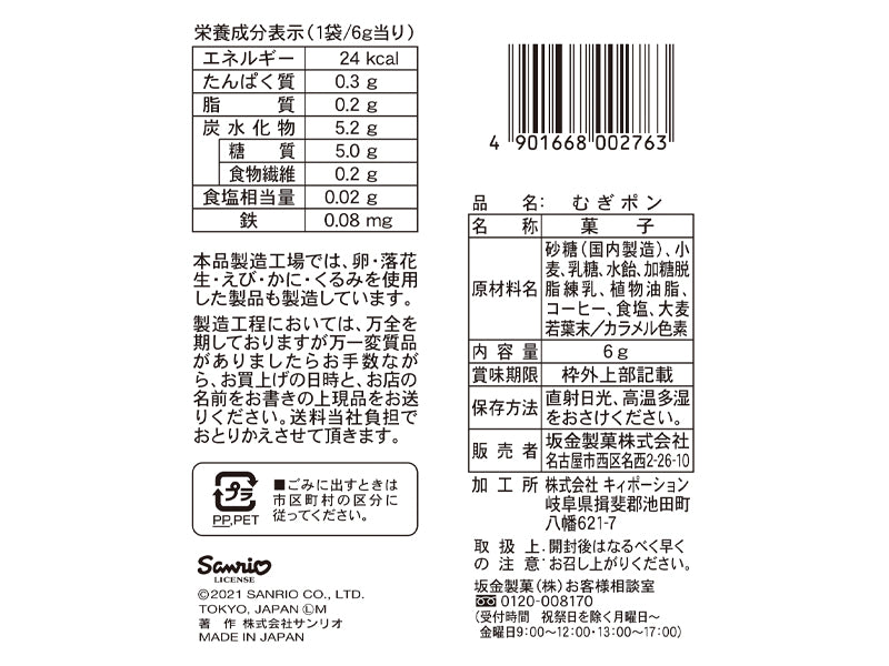 特徴:小麦粒をソフトにポップし、大麦若葉やコーヒーを配合した糖蜜で味付けました。/n牛乳をかければシリアルとしてもお召し上がりいただけます。/nデザインにはサンリオの人気キャラクター、クロミを取り入れました。