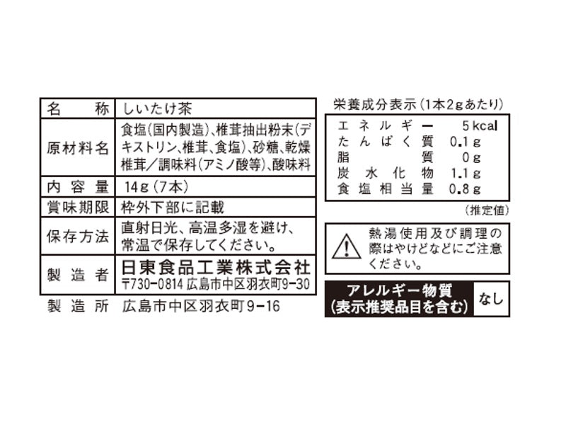 特徴:椎茸の上品な香りとまろやかな風味がそのまま味わえるしいたけ茶です。