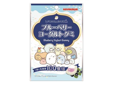 特徴:ヨーグルト風味のグミにブルーベリーゼリーを入れました。乳酸菌100億個配合。