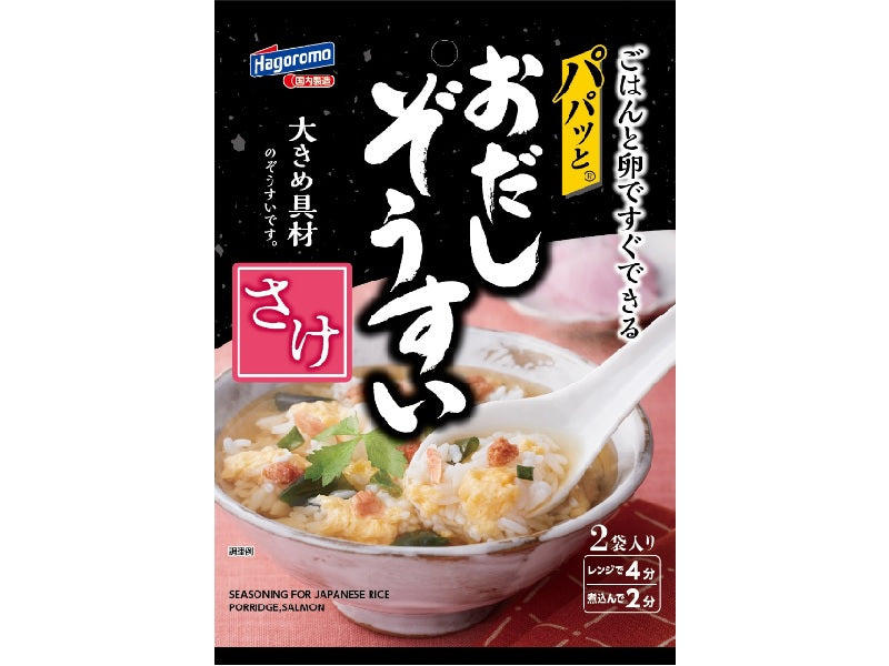特徴:かつお節と昆布のだしをきかせた味わい深いさけぞうすいの素です。ごはんと卵で手軽にさけぞうすいが味わえます。電子レンジまたは鍋で煮込むだけで簡単に作れます。