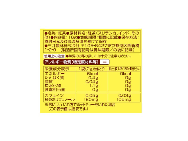 特徴:主要産地の茶葉を日本の水に合うようにブレンドした、豊かな香りとコクのある味わい。
