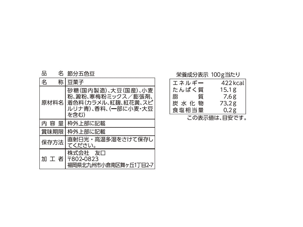 特徴:カラフルな五色の豆菓子です。