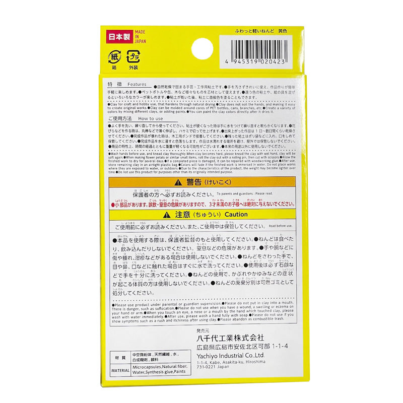 手につきにくい色の混ぜ合わせ自由ねんどを混ぜ合わせてカラーを楽しもう!こい色を少しずつ足していくとうまくできるよ!自然乾燥で固まる手芸・工作用粘土です。手を汚さずきれいに使え、作品作りが簡単手軽に楽しめます。ペットボトルや缶、木など様々なものを芯材として使えます。違う色の粘土や、絵の具を混ぜるといろいろなカラーが楽しめます。粘土が乾いた後、粘土に直接色を塗ることもできます。よく手を洗い、練り直してから使って下さい。粘土が硬くなった時は手に水をつけて練り直すと軟らかくなります。花びらなどを作る時は、丸棒などで薄く伸ばし、ハサミで切って仕上げます。出来上がった作品は1日から数日間くらい乾燥させて下さい。完成作品が壊れた時は、木工用ボンドで接着して下さい。残った粘土はポリ袋などに入れ、口をしめて保管して下さい。完成作品を水に浸すと色落ちします。作品は水濡れする場所を避け、屋外では保管しないで下さい。本来の用途以外に使用しないでください。商品の特性上、時間の経過とともに重量が軽くなる可能性がございます。ねんどは食べたり、飲み込んだりしないで下さい。窒息などの危険があります。手や腕などに傷や腫れ、湿疹などがある場合は使用しないで下さい。ねんどをさわった手で、目や鼻、口などに触れた場合はすぐに水で洗って下さい。使用後は必ず石鹸などで手を十分に洗って下さい。ねんどの使用で、かぶれやかゆみなどの症状が起こる体質の方は使用しないで下さい。ねんどの廃棄分別は可燃ゴミとして処分して下さい。警告保護者の方へ、必ずお読みください。小部品があります。誤飲・窒息の危険がありますので、3才未満のお子様へは絶対に与えないでください。本品を使用する際は、保護者監督のもと使用してください。