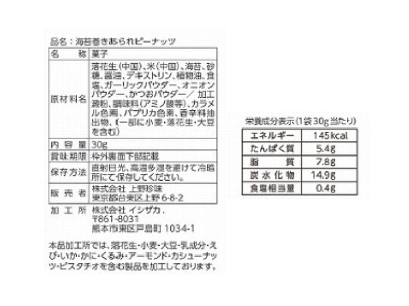 特徴:旨味広がる海苔巻きと香ばしいピーナッツをミックスしました。