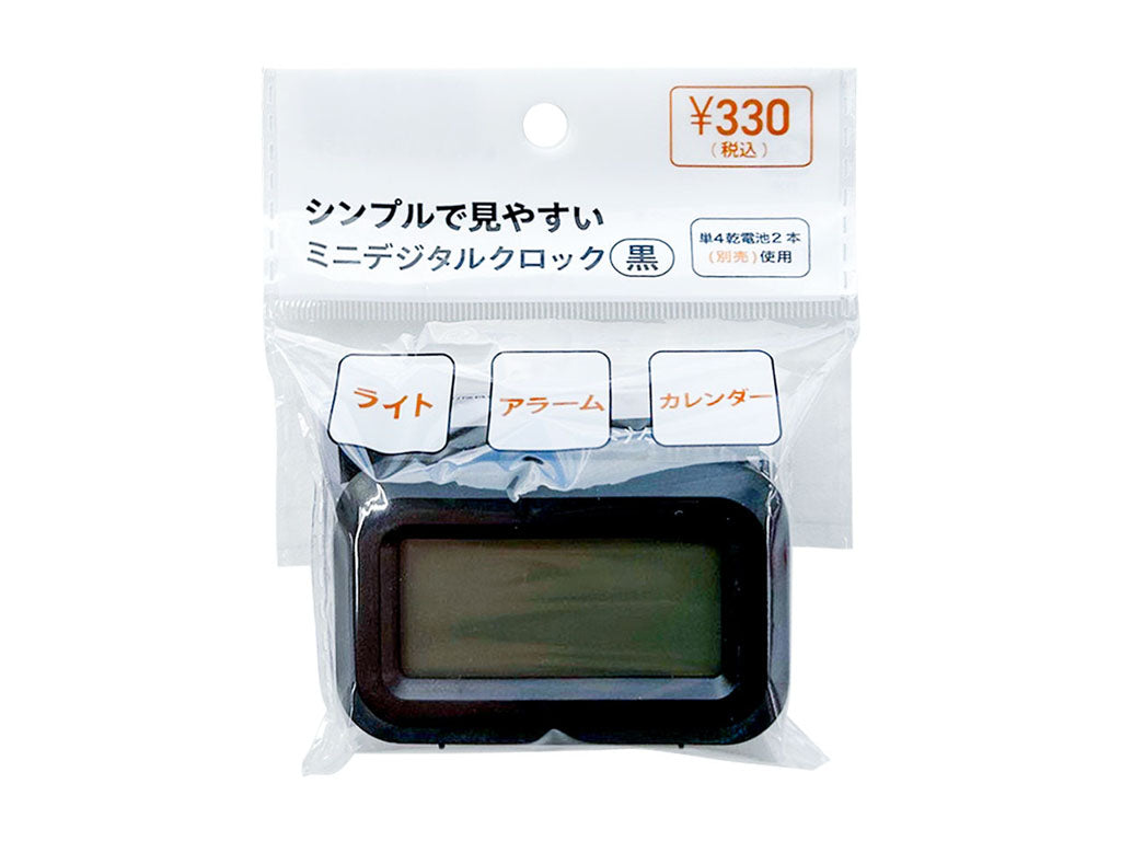 ライト、アラーム、カレンダー機能付き 時間をはかり、また、時刻を示す機械です。単4電池2個で使用できます。ご使用の前に必ず動作確認を行ってください。本商品は防水加工ではありません。水のかかる場所、湿気の多い場所では使用しないでください。本商品を不安定な場所に置かないでください。落下によりケガや破損の原因となります。パソコン・テレビ・磁気カードなど、磁気が影響する恐れがあるものには近づけないでください。時間等を設定する際は、必ず手に取って設定してください。電池の+、-は正しくセットしてください。間違ってセットすると発熱・感電・故障の原因となります。長期間使用しない場合は、電池の液漏れによる損傷防止のため、電池を取り外して保管してください。落とす、ぶつけるなどの強い衝撃を与えないでください。改造分解修理は絶対にしないでください。故障や事故の原因となります。廃棄の際は、各自治体の定める方法に従って処理してください。お子様の手の届かない場所で、ご使用、保管してください。極端に高温、低温、高湿、低湿な場所や、直射日光にあたる場所でのご使用や保管はお避けください。品質劣化の原因となります。火のそばでのご使用や保管はおやめください。●乳幼児の手の届かない場所で使用・保管してください。●本来の用途以外に使用しないでください。