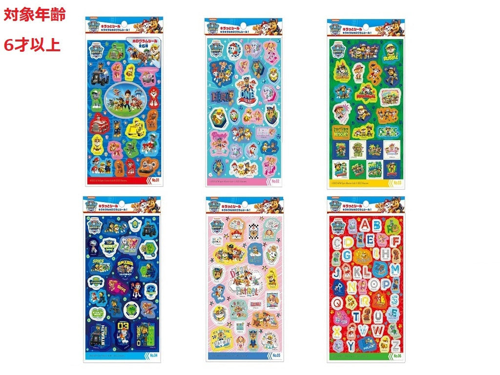 キラっと光るキャラクターシールです。シール6柄アソートで選ぶのも楽しい。シールを貼って遊ぶ。シール印刷面同士を重ね合わせて、保管しないでください。
