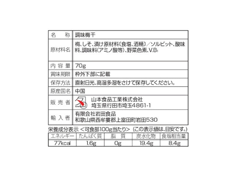 特徴:しそのさわやかな香りをいかした、さっぱりとした味わいの梅干です。