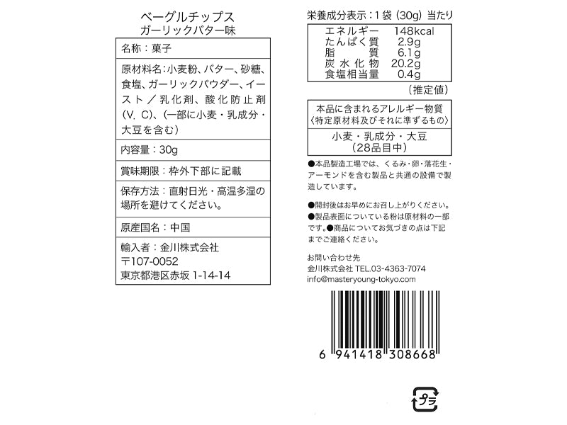 特徴:ベーグルをいつでも手軽に食べられる、カリカリのチップスにしました。
